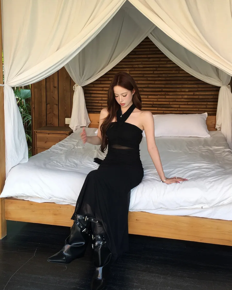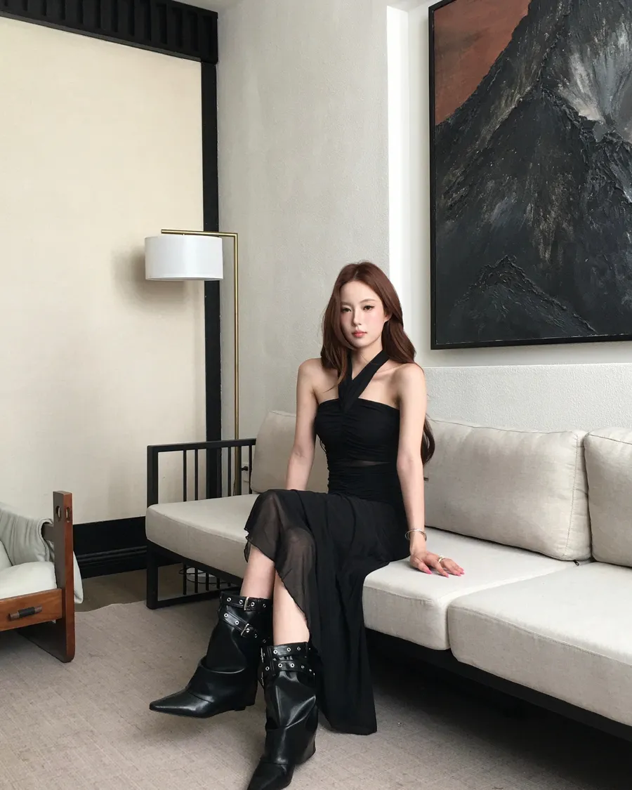 Silent Rose綁帶掛脖透紗魚尾長裙(預購)