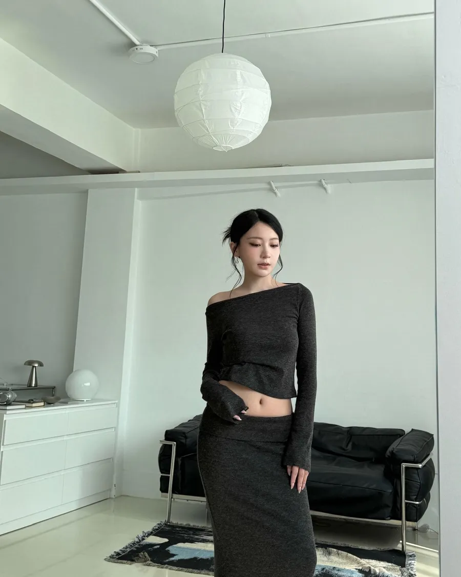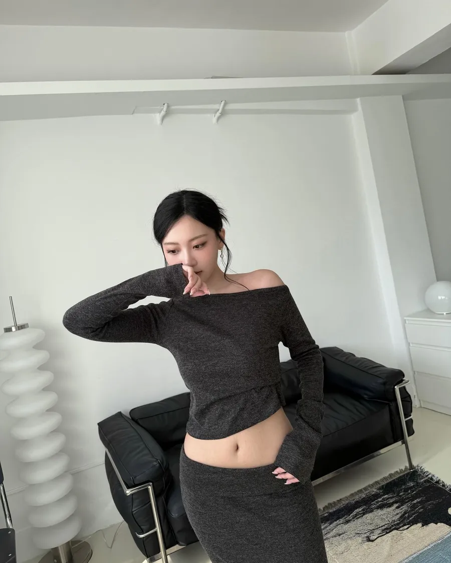 微露肩設計展現自然女人味,卻不會過於性感,保留剛剛好的優雅感。薄針織材質輕柔親膚,適合換季或室內穿著。整套版型帶點慵懶氛圍,穿上就有隨性又高級的感覺。無論在餐廳、咖啡廳或日常約會,都能輕鬆展現低調卻吸引人的氣質。