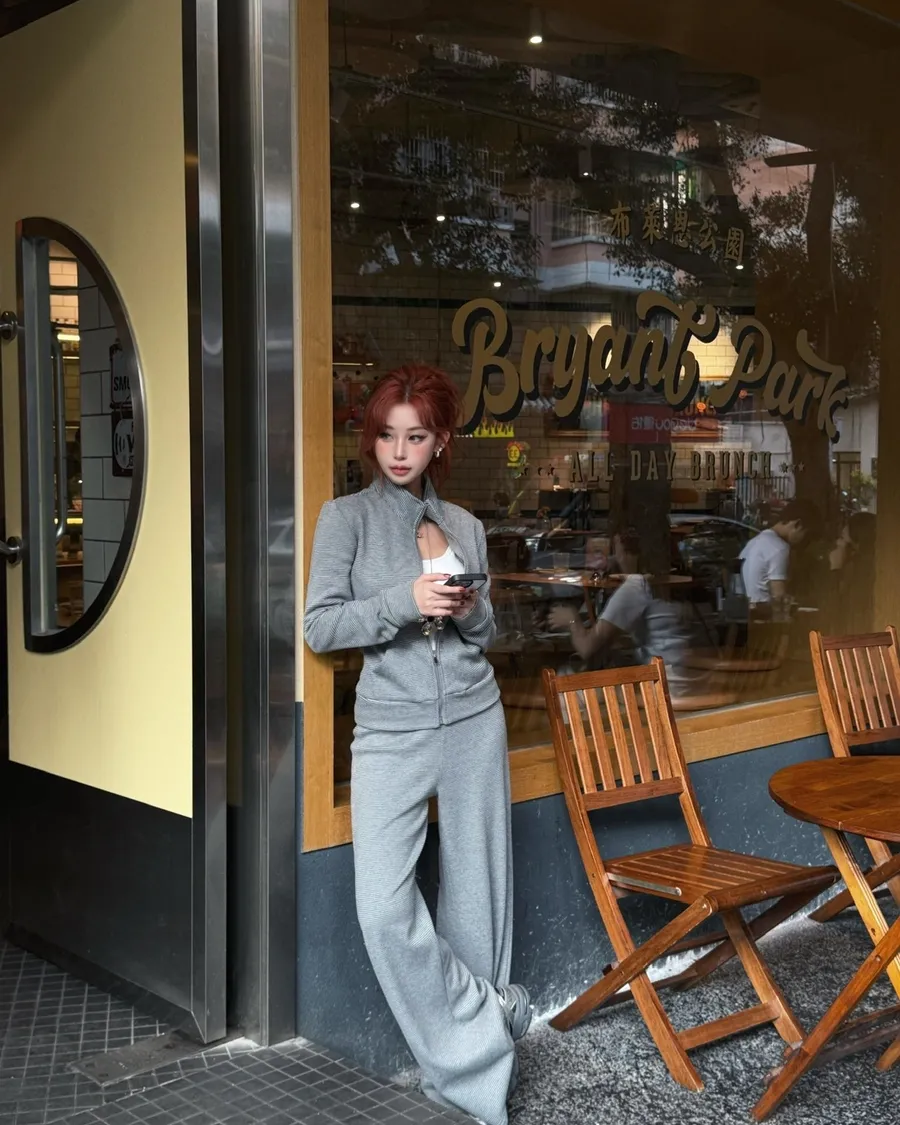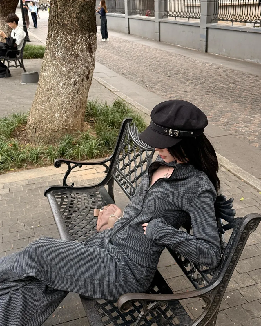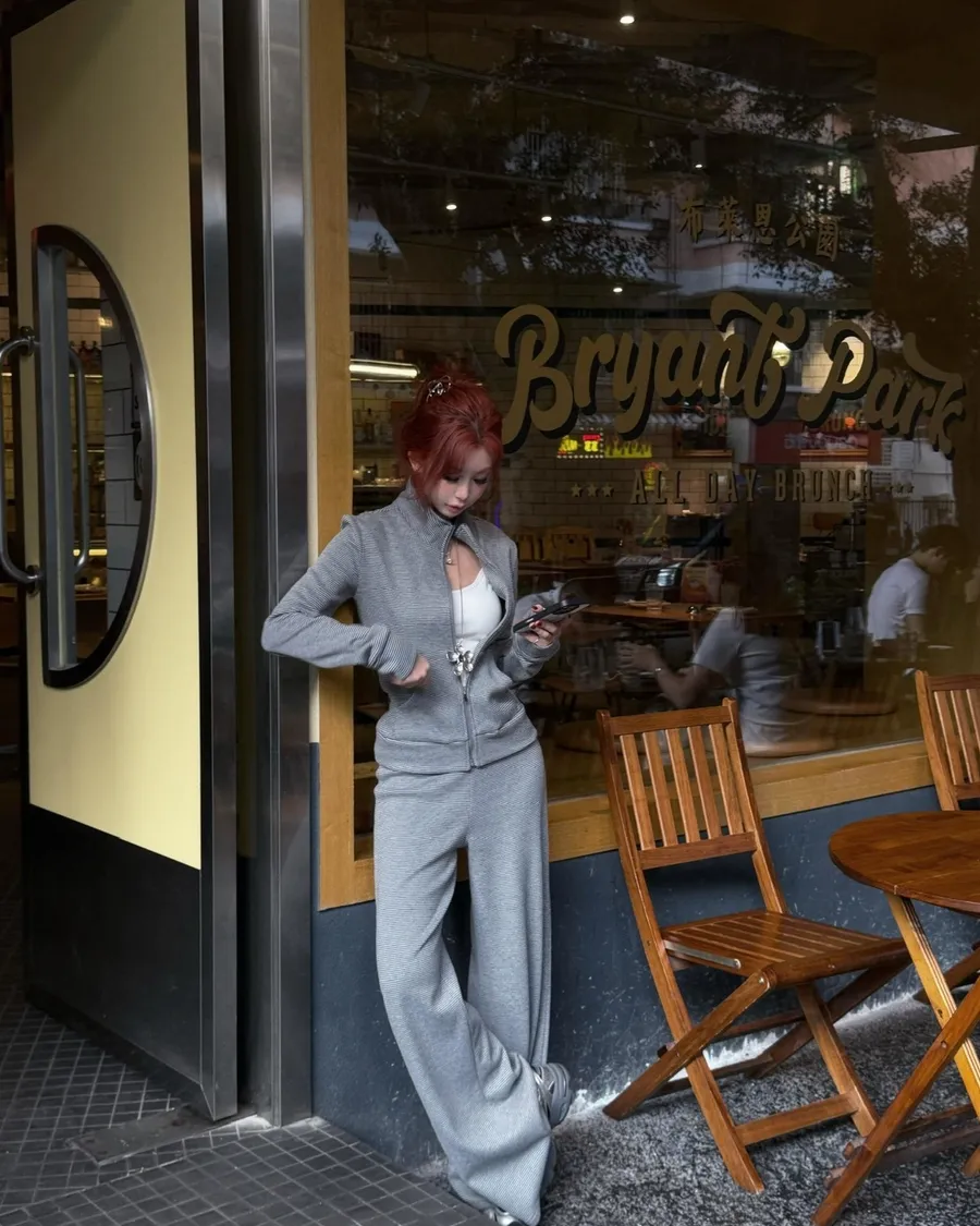 簡約線條搭配修身剪裁,讓舒適與質感同時存在。布料柔軟有彈性,長時間穿著也不覺得負擔。整套搭配非常適合旅行、機場或日常外出,一穿就完成整體造型,是忙碌生活中的實穿選擇。